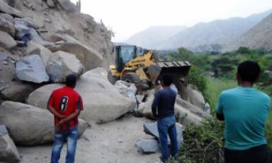 Para mover las enormes rocas los trabajadores del IVP tuvo que hacer uso de maquinaria pesada como cargador frontal y martillo perforador hidráulico, además de palanas que permitieron limpiar la vía rural para restablecer el tránsito vehicular. También se contó con el apoyo de la municipalidad Distrital de Quillo.