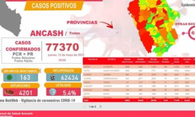 Según el último reporte de la Dirección Regional de Salud de Áncash (DIRESA), en esta región se han infectado 163 distritos, confirmados 77 mil 370 contagios y la letalidad es de 5.4%.