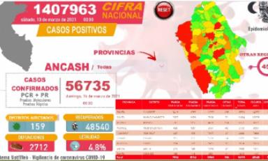 En Áncash de sus 166 distritos, 159 se han infectado del virus, los contagios suman 56 mil 735, los recuperados 48 mil 540 y fallecidos 2 mil 712. (Redacción Central)