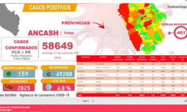 La Dirección Regional de Salud de Áncash informó también que la pandemia ha causado hasta hoy la muerte de 2,825 personas en esta región, donde se han contagiado 58,649 y se han recuperado 49,288. (Redacción Central)