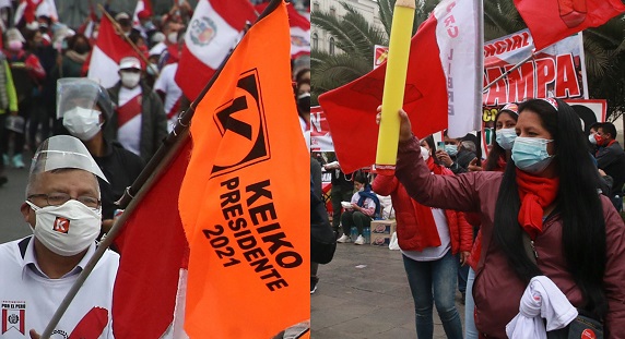 Huaraz en Línea.- Diversos colectivos ciudadanos realizaron marchas esta tarde por las principales calles del Centro de Lima y Jesús María en apoyo a sus candidatos Keiko Fujimori (Fuerza Popular) y Pedro Castillo de Perú Libre, quienes participaron en la segunda vuelta y que están en compás de espera hasta que el Jurado Nacional de Elecciones (JNE), proclame los resultados oficiales luego de resolver las actas impugnadas y observadas.