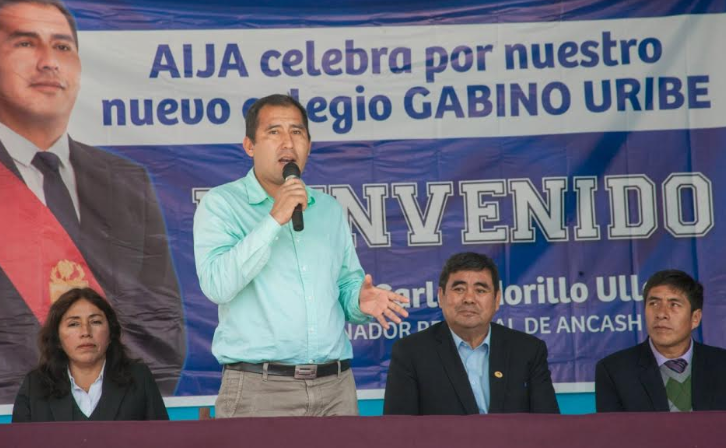 Tras escuchar al gobernador regional, el director de la I.E. Gabino Uribe Antúnez, Arturo Patricio Colonia, saludó su disposición por trabajar en bien de la educación en Ancash y mejorar el nivel de aprendizaje. Lo mismo hizo el alumno Nilver Arias Robles, alcalde del municipio escolar, quien le pidió a Juan Carlos Morillo no olvidarse de los niños de su tierra.