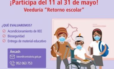 La actividad que forma parte de las veedurías escolares virtuales denominadas “Retorno Escolar” se desarrollará hasta el 31 de mayo del 2022 y permitirá conocer la percepción de los estudiantes sobre cómo se vienen realizando el retorno a las aulas en el marco de la emergencia sanitaria por la Covid-19; asimismo, busca promover la participación ciudadana y el ejercicio del control social a sus autoridades educativas de manera responsable y sostenida.