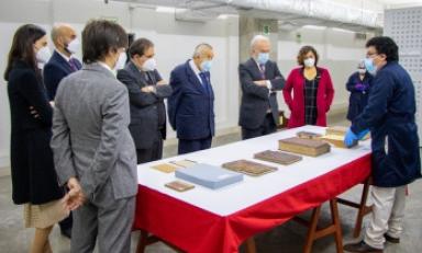 Posteriormente, visitaron la bóveda de la BNP, donde se resguardan las obras más valiosas del país, acompañados de la jefa de gabinete del Director de la RAE, Pilar Llull; el Consejero de Asuntos Culturales y Científicos de la Embajada de España, Guillermo López Gallego; el Coordinador del IX Congreso Internacional de la Lengua Española, Alonso Ruiz Rosas; y el jefe del Departamento de la UNESCO en la Dirección General para Asuntos Culturales, Sebastián García; y del presidente de la Academia Peruana de la Lengua, Marco Martos.