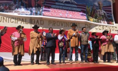 Huaraz en Línea.- El presidente de la República, Martín Vizcarra, y la ministra de Cultura, Patricia Balbuena, llegaron a Corongo, en la región de Áncash, para hacer la entrega del diploma que acredita el reconocimiento del Sistema Tradicional de Jueces de Agua de Corongo como integrante de la lista de Patrimonio Cultural Inmaterial de la Humanidad de la Unesco, con lo cual suman nueve expresiones culturales peruanas que forman parte de esta lista.
