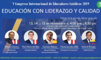 Huaraz en Línea.- Del 13 al 15 de noviembre, la Oficina Nacional de Educación Católica (ONDEC) llevará a cabo el V Congreso Internacional de Educadores Católicos: “Educación con Liderazgo y Calidad” en el Coliseo del Colegio Claretiano en San Miguel, Lima.
