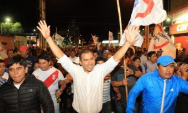 Morillo enterado de los resultados festejó en su local de campaña con todos sus militantes. Y en su primer discurso anunció que realizará un gobierno de concertación en Áncash. (Redacción Central)