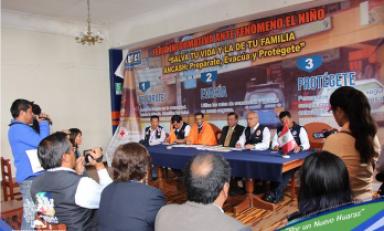 Huaraz en Línea.- En conferencia de prensa realizada hoy, los integrantes de la Plataforma de Defensa Civil anunciaron el desarrollo de una feria informativa de sensibilización y simulacro de sismo ante el Fenómeno el Niño en la ciudad de huaraz.