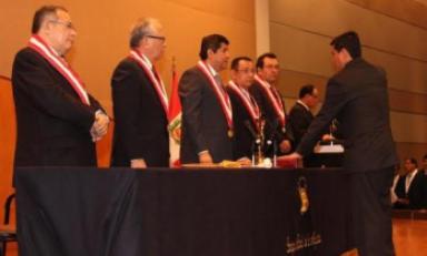 En las ceremonias públicas, efectuadas en el  auditorio de la Asamblea Nacional de Rectores (Surco), los nuevos magistrados recibieron la cinta y la medalla, así como el título correspondiente, de manos del titular del organismo constitucional.