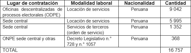 Huaraz en Línea.- En la Oficina Nacional de Procesos Electorales (ONPE) laboran 16 757 personas, todas ellas con Documento Nacional de Identidad (DNI), el cual es emitido exclusivamente por el Registro Nacional de Identificación y Estado Civil (RENIEC) a ciudadanos con nacionalidad peruana.