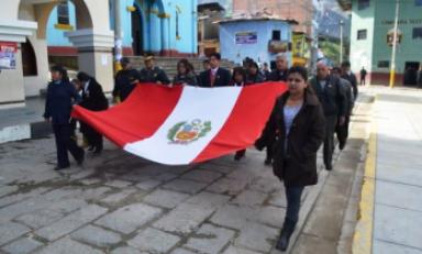 El acto cívico contó con la asistencia del teniente tlcalde, Lorenzo Reyes Vidal; el gobernador provincial, Jhonny Zavaleta Miranda; la juez Titular del Juzgado de Primera Nominación de Cabana, Natividad Gilda Vivar Manrique; la fiscal Provincial Penal, Elva Cordero Tamariz; el párroco de Cabana, Arturo Lévano Montes y el nuevo Comisario PNP Cabana, MY PNP Eloy Carrasco Mena.