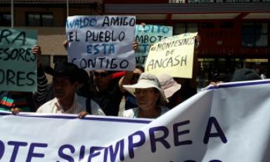 Francisco Díaz Pérez, uno de los manifestantes del grupo, señaló que arribaron de Chimbote y Nuevo Chimbote a Huaraz, para dar su respaldo a Waldo Ríos Salcedo.