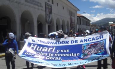 Los manifestantes, en su mayoría provenientes de la zona costa de la región, hicieron un recorrido por las avenidas céntricas de la ciudad, quienes corearon el himno de de la agrupación política de Puro Áncash.